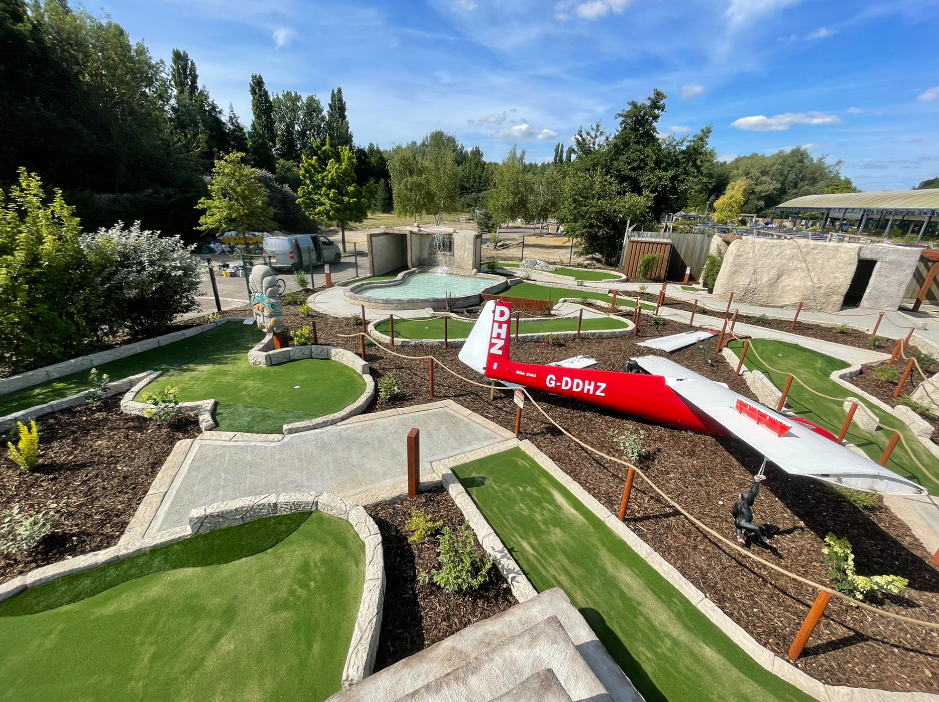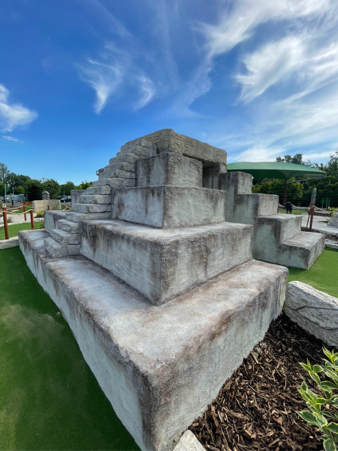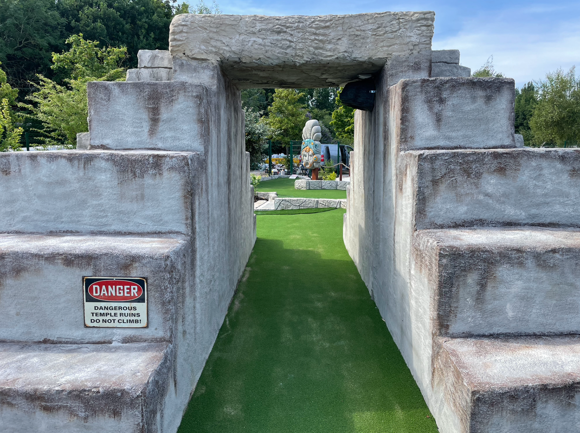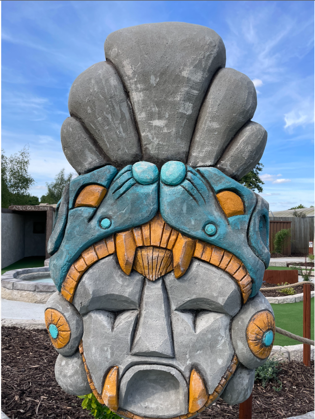 commissioned to theme an Aztec mini golf in Huntington, over the course of three months