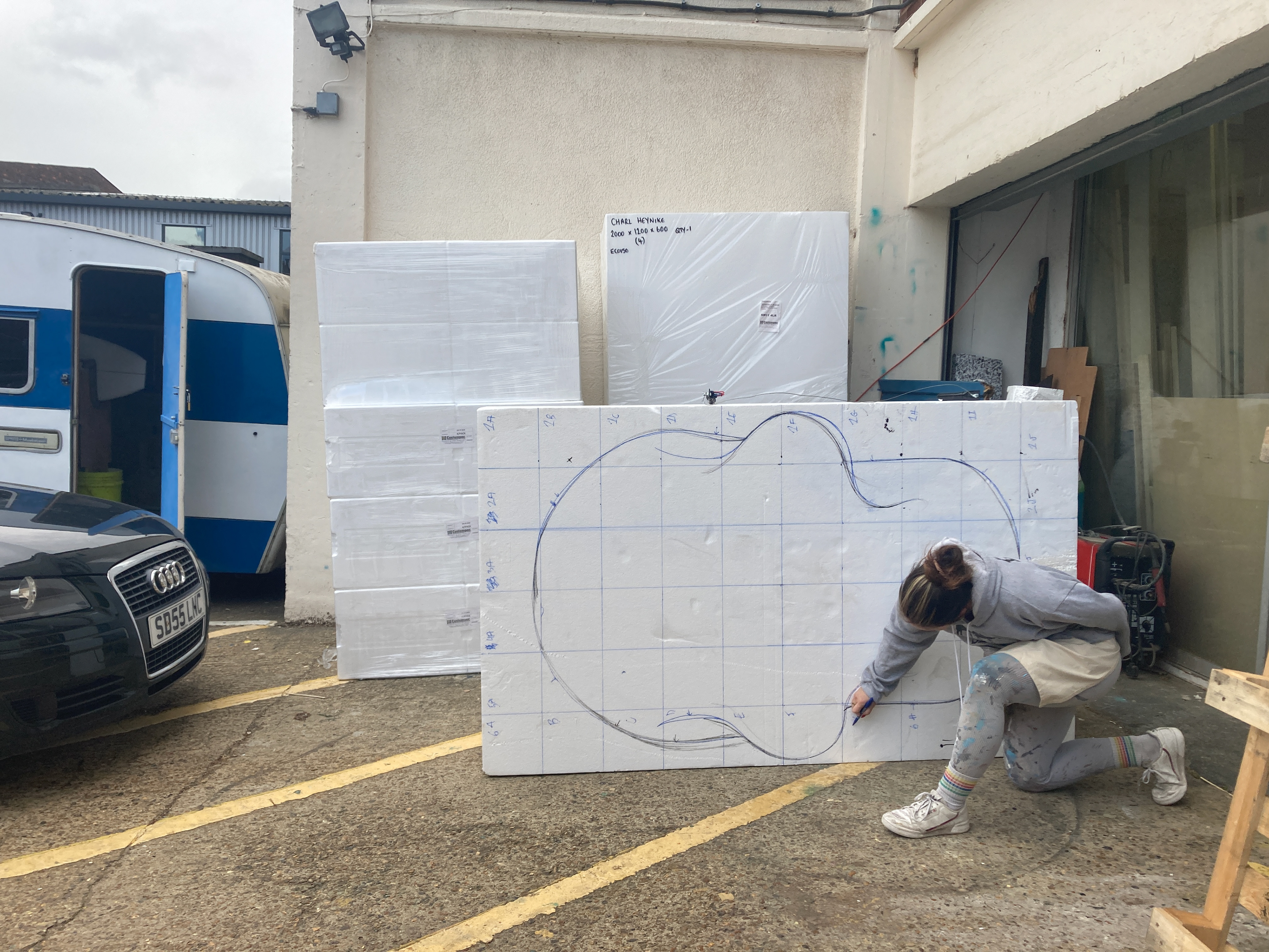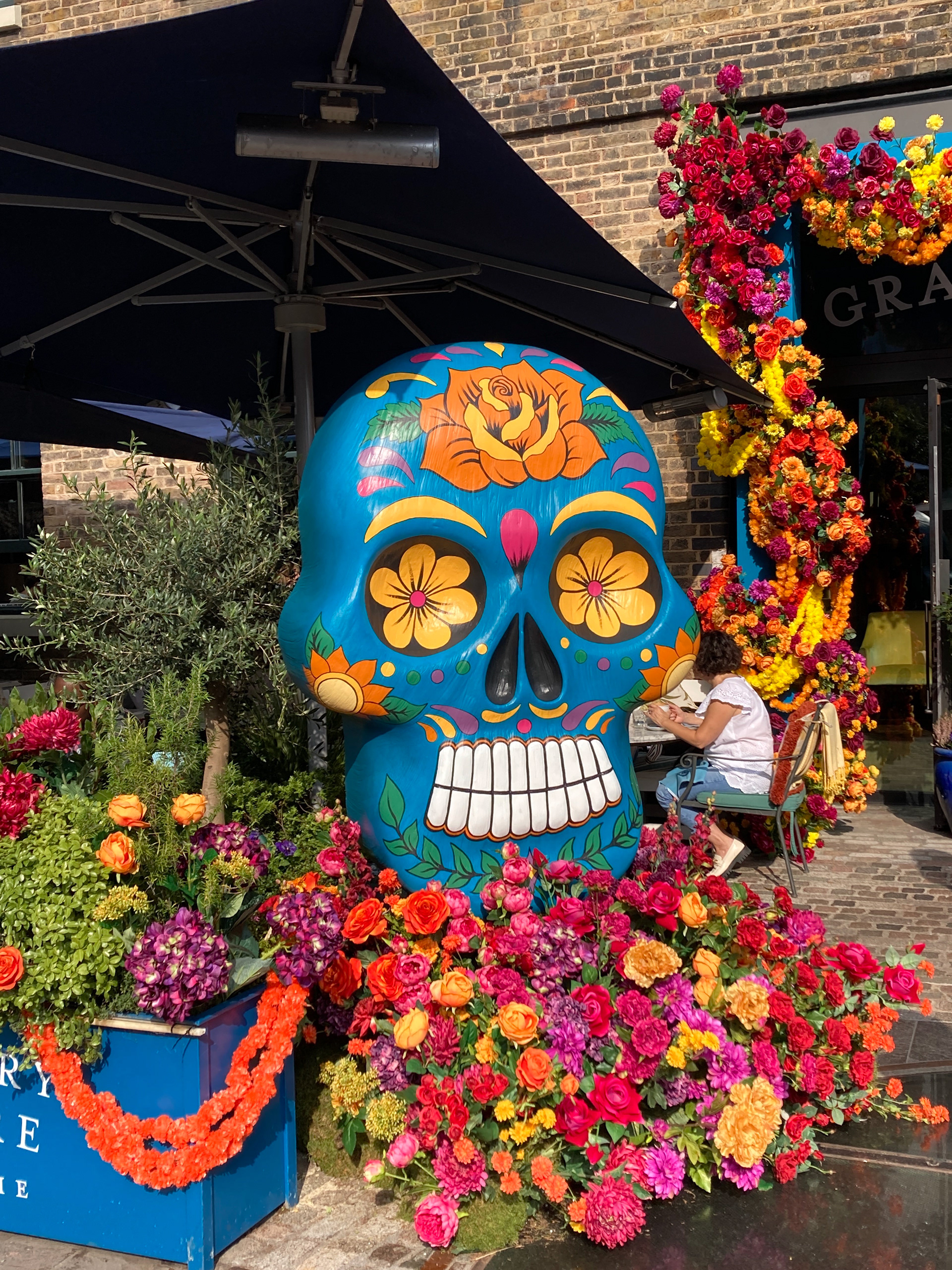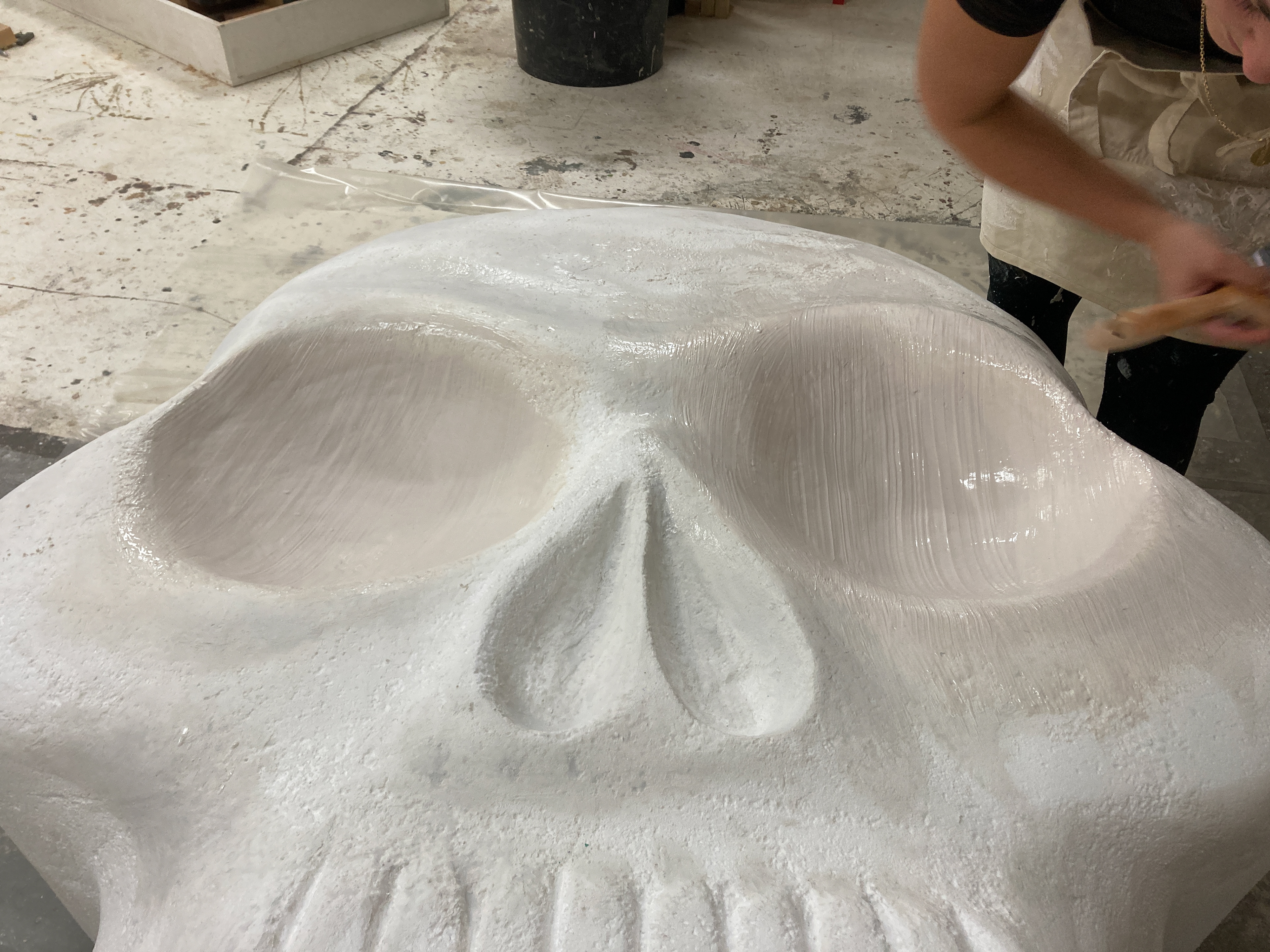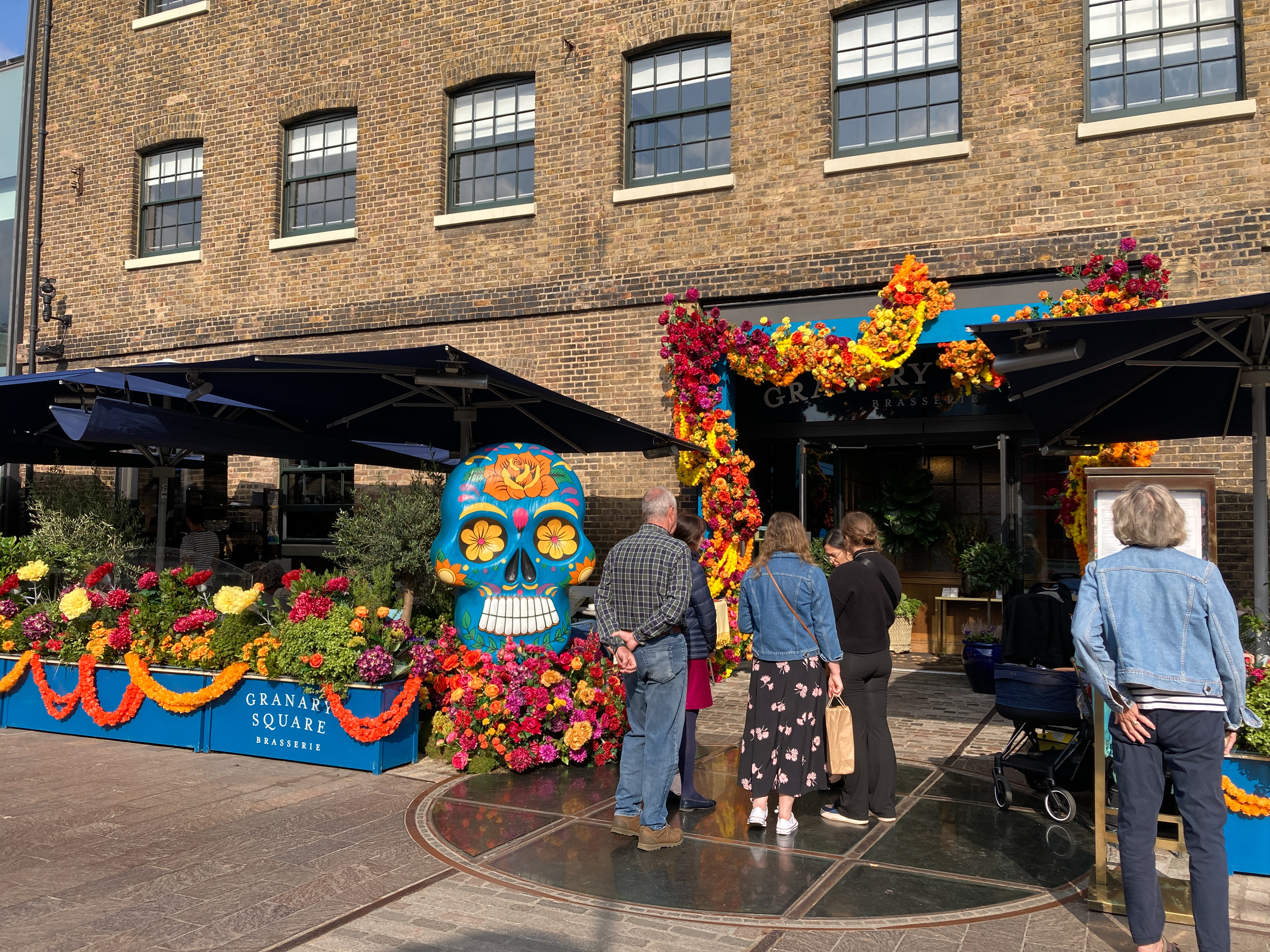 Located in Kings Cross Coal drops yard, Granary Square wanted an eye-catching three metre tall Day of the Dead themed skull. This commission was made start to finish in three days..